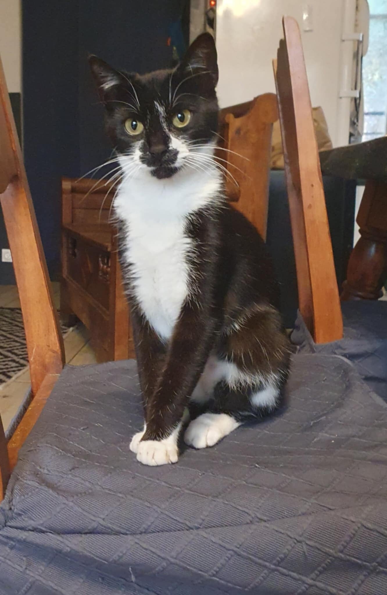 . L'animal est bien adapté et intégré à sa nouvelle famille.