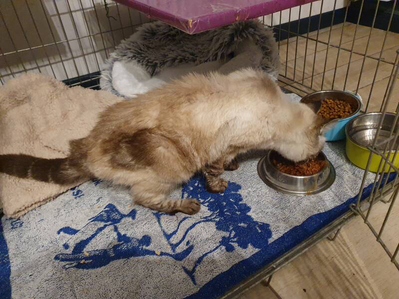 Petite minette non identifiée qui est dehors depuis plusieurs semaines. Elle est désormais au chaud et à l'abri.