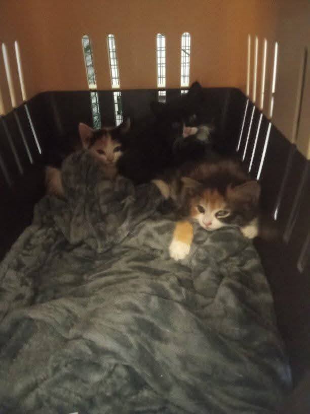 Sauvetage de 3 Chatons trappés par Valérie, la maman a été stérilisée et relâchée car très sauvage.