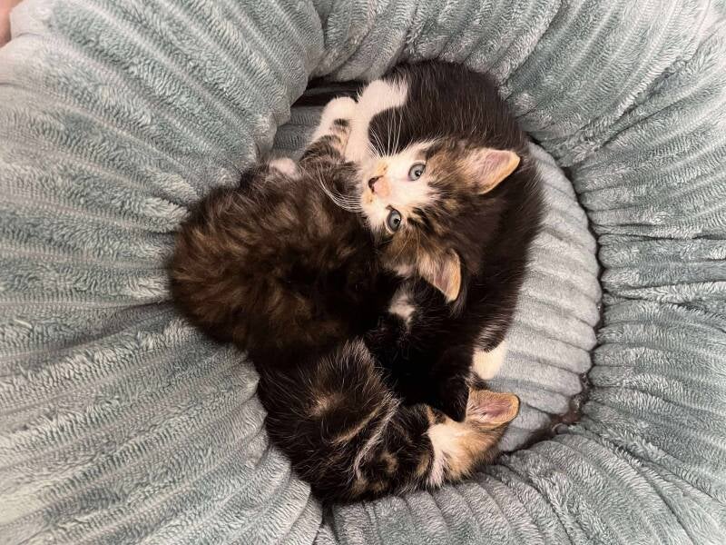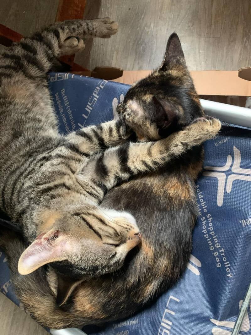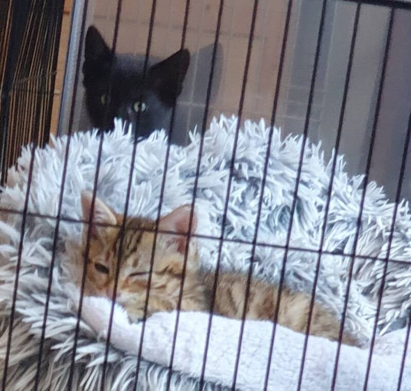 le 17 janvier 2025 : 2 loulous de 5 / 6 mois nés dehors dans un jardin à Corbeil sont aujourd'hui au chaud.