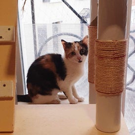 Nous venons de récupérer cette minette dont le propriétaire ne voulait plus. Elle fait du léchage compulsif ce qui explique les grandes zones sans poil. Elle est extrêmement craintive à tout mouvement et tout bruit.