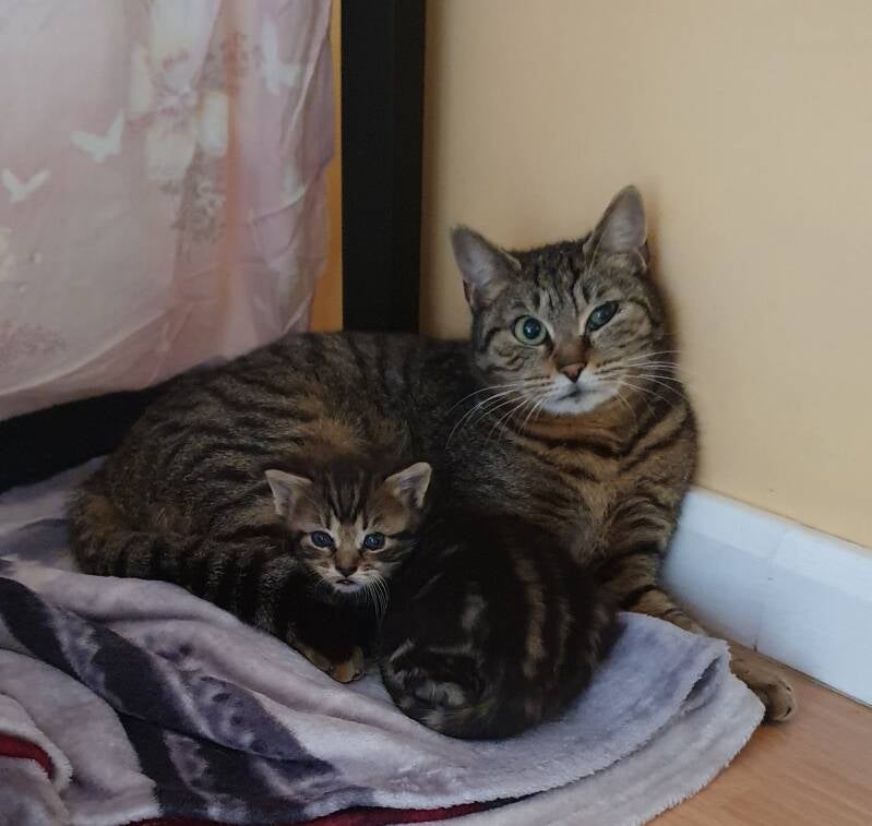 Nouvelles prises en charge, 2 chatons d'environ 4 mois et une maman avec ses 2 bébés