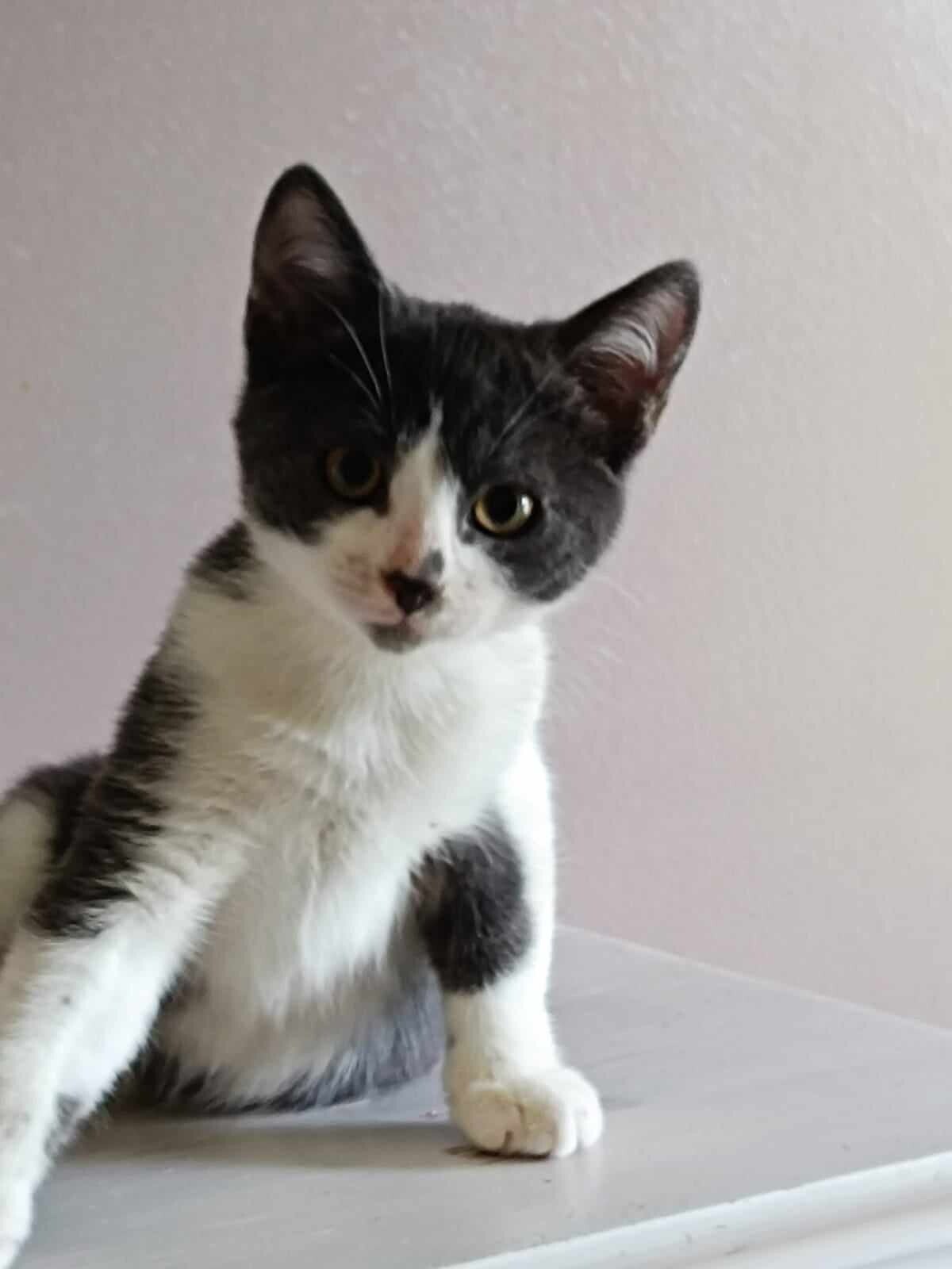 Dusty est né le 10 avril 2024. C'est un chaton gris et blanc attachant et en pleine forme. En famille d'accueil à Saint Germain les Corbeil (91)