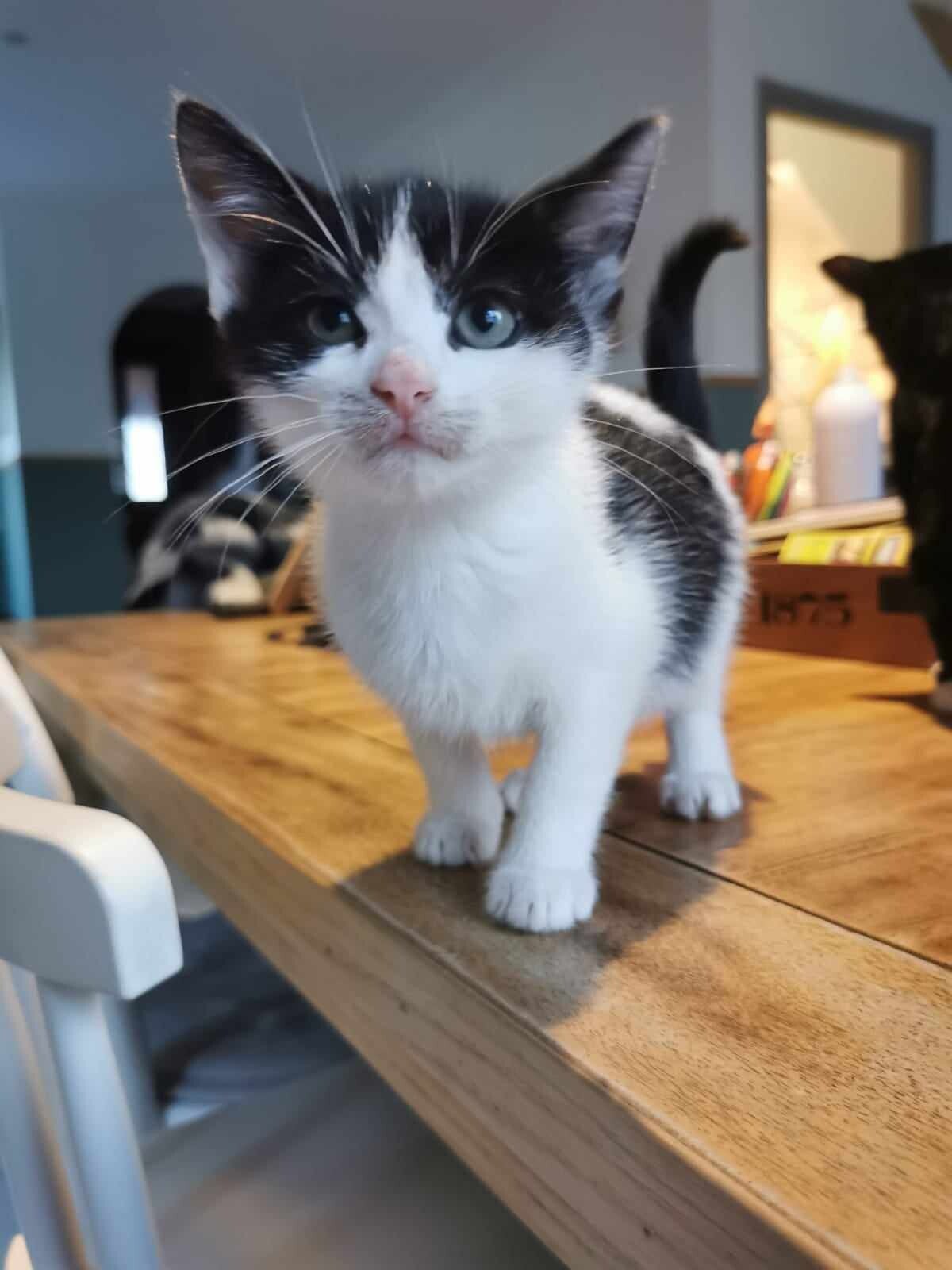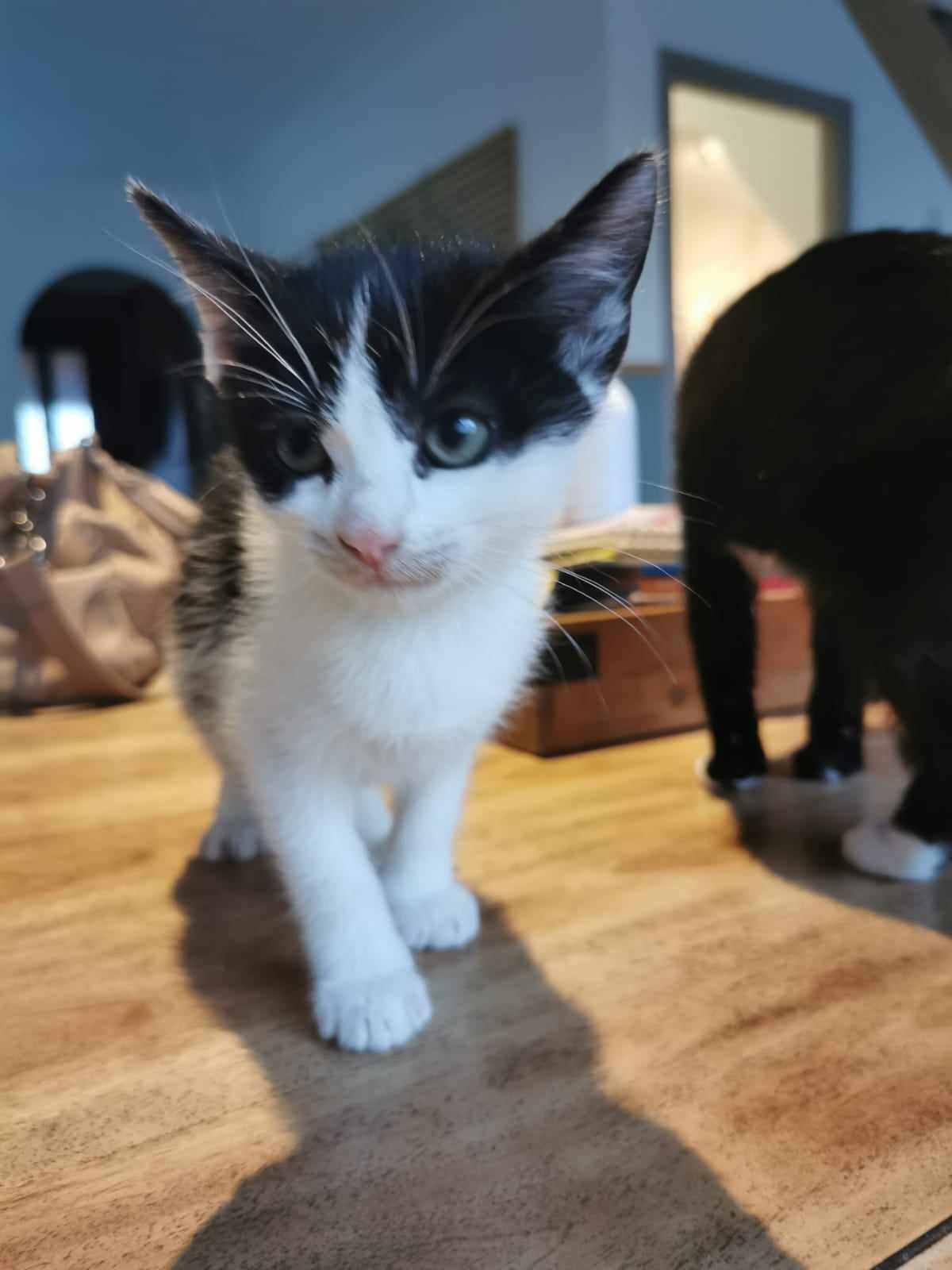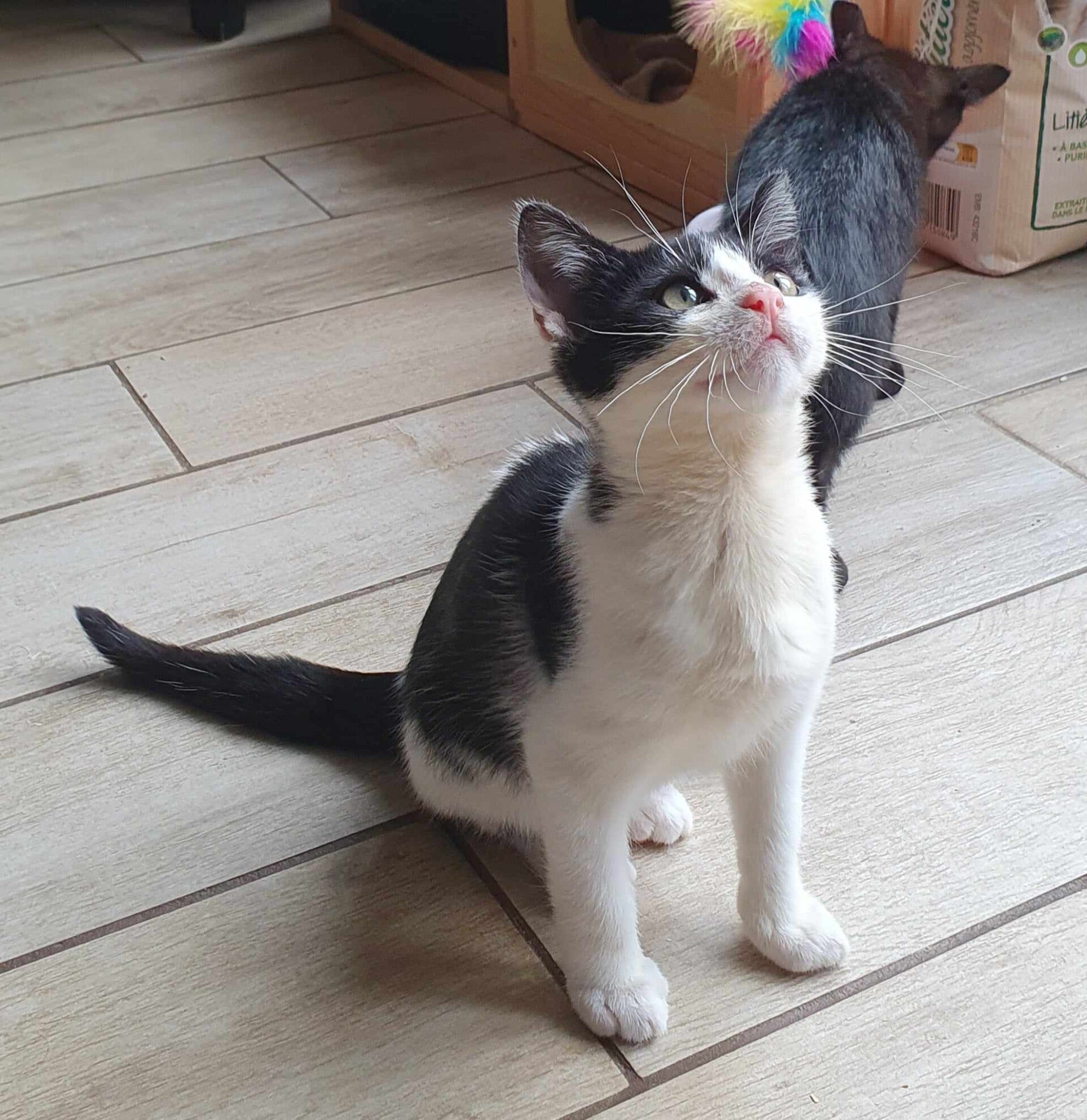 JAZZ est un chaton joueur et câlin, bien dans ses patounes ! Jazz démarre le moteur à ronrons des que vous le prenez et il adore dormir sur vous.