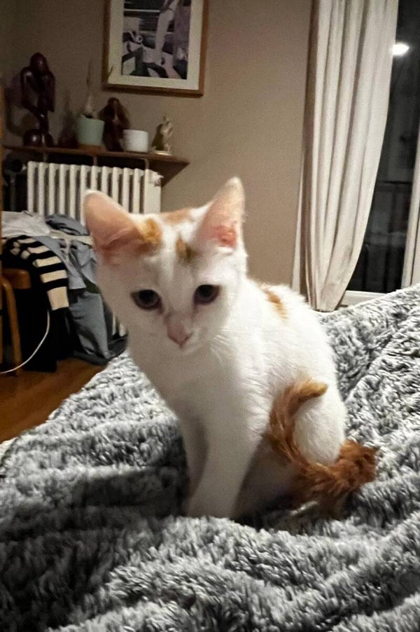 Il est calinou et tres doux mais encore timide il aura besoin d'un environnement calme pour s'adapter.
