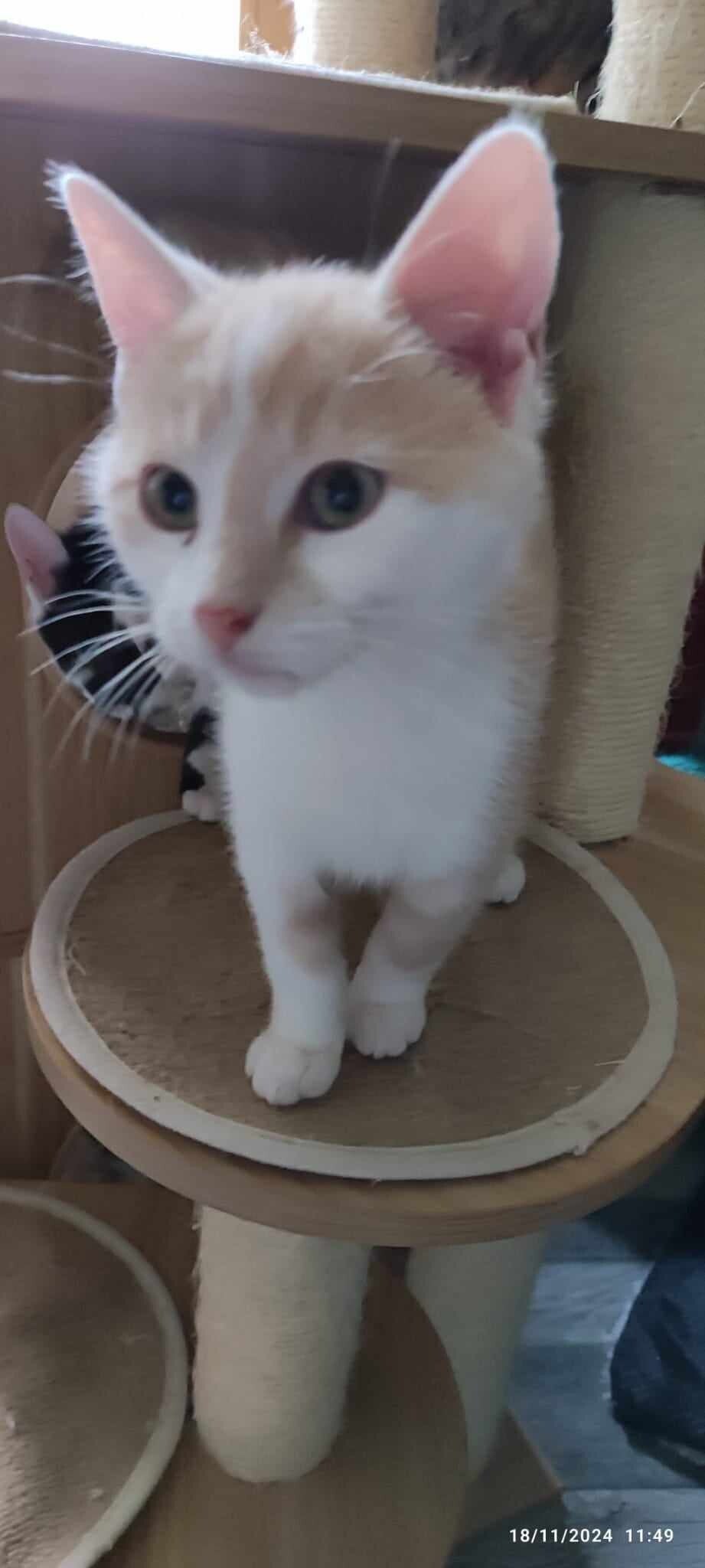 Toffee est né le 1er septembre 2024, c'est un chaton bien dans ses patounes qui aime tout autant jouer que les bras pour les câlins.