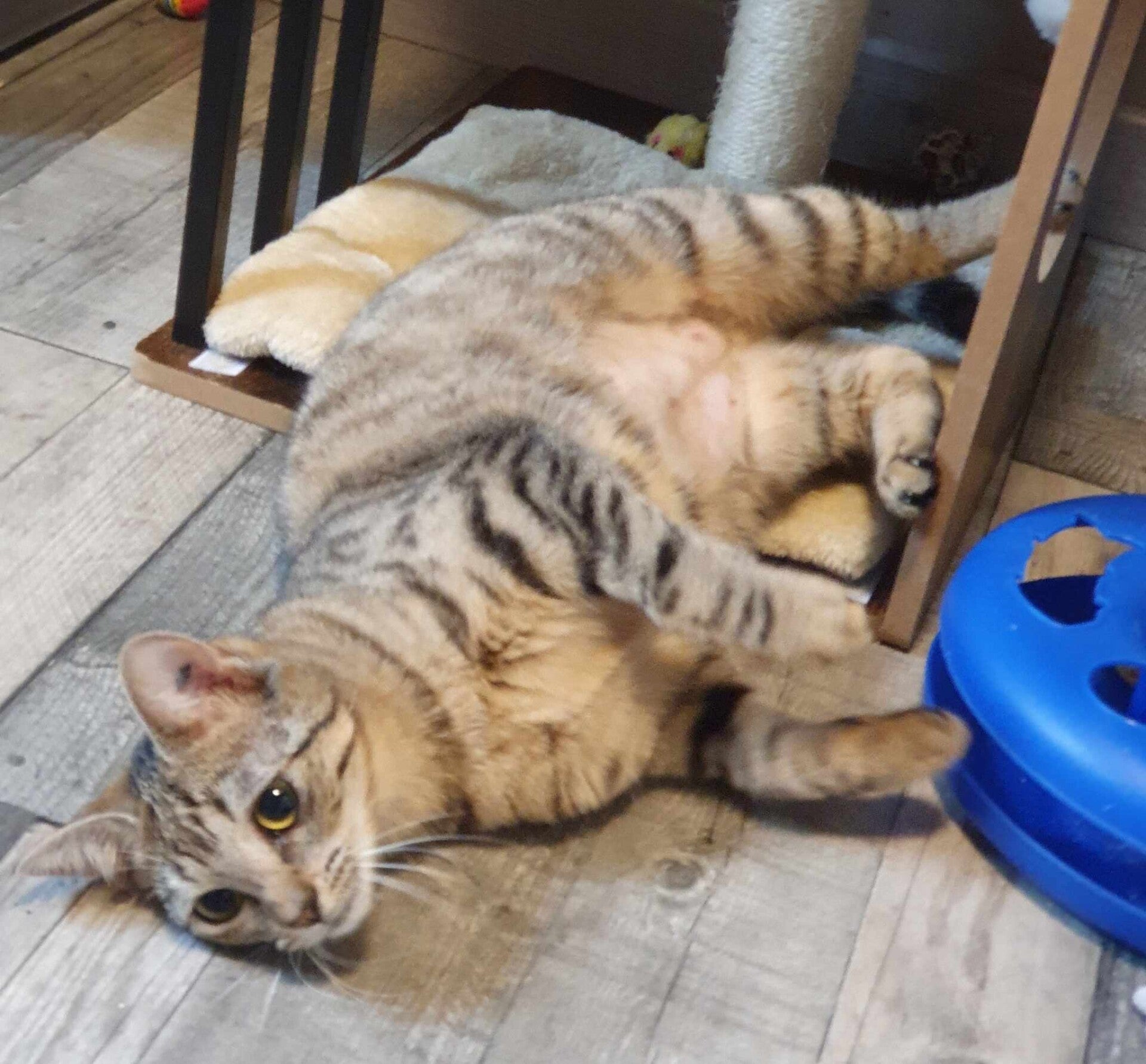 Elle est très joueuse et saura vous faire comprendre par de petits miaulements qu'il faut sortir le plumeau et ce sera sans fin, elle ne se lasse jamais.
