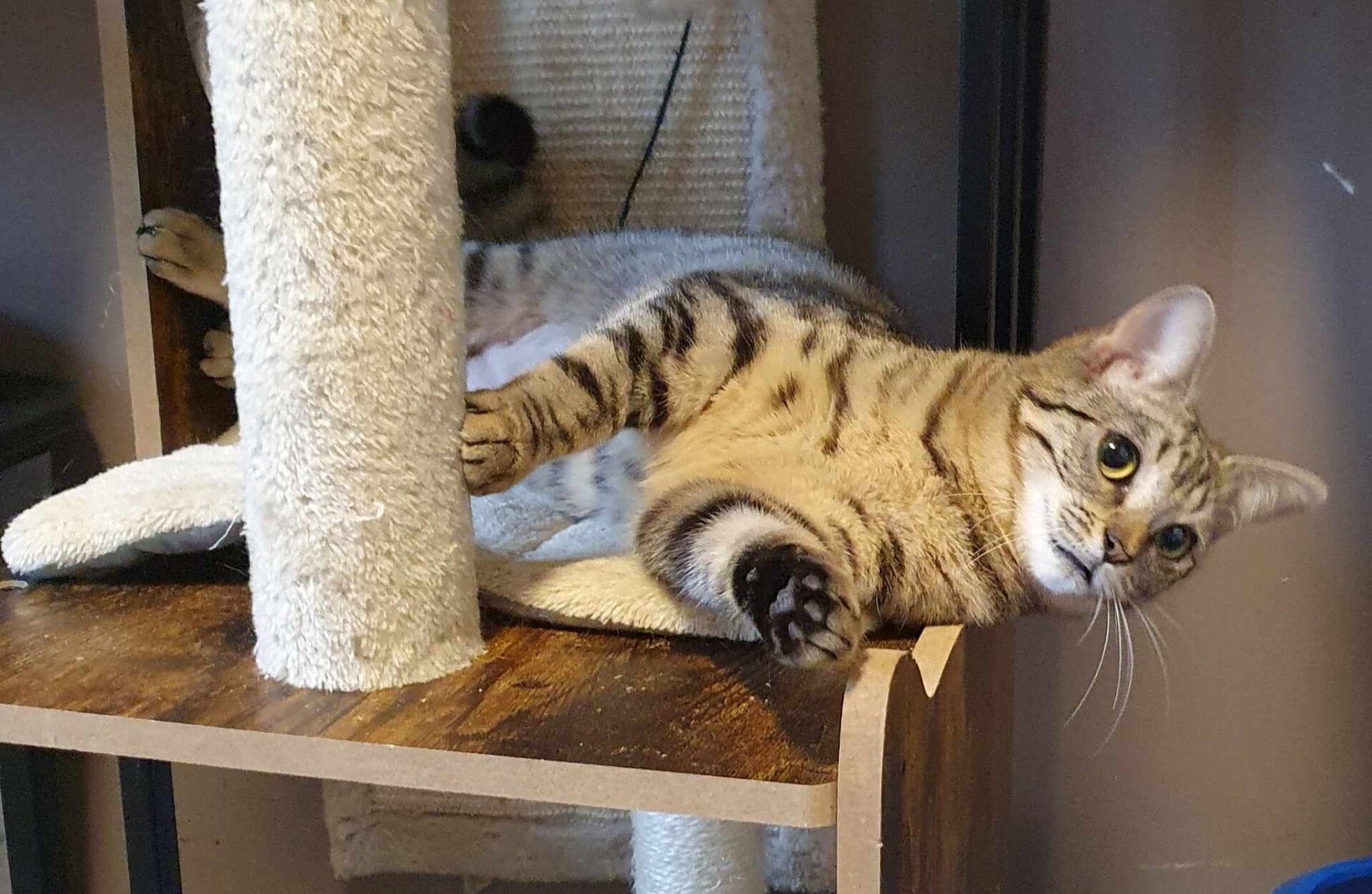 Patchy est une minette que nous avons récupérée très craintive voire sauvageonne, qui a beaucoup progressé et ce n'est pas fini.