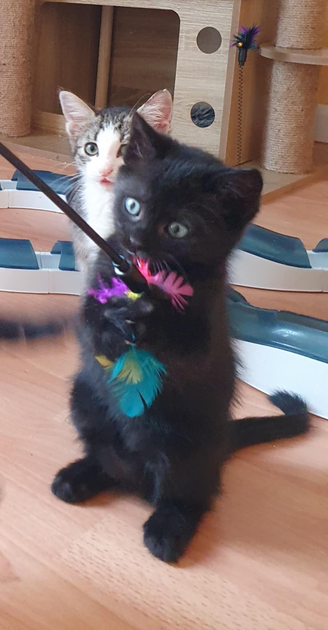 Les 2 jumeaux débordent d'énergie et le plumeau est leur péché mignon. ce sont aussi de vrais moteurs à ronrons