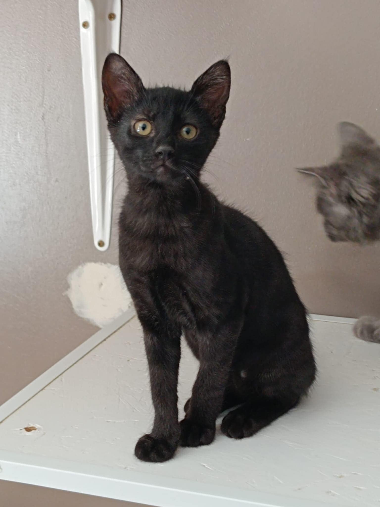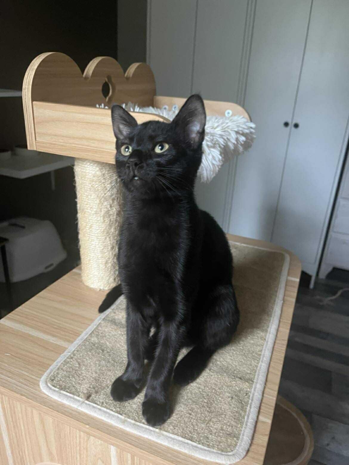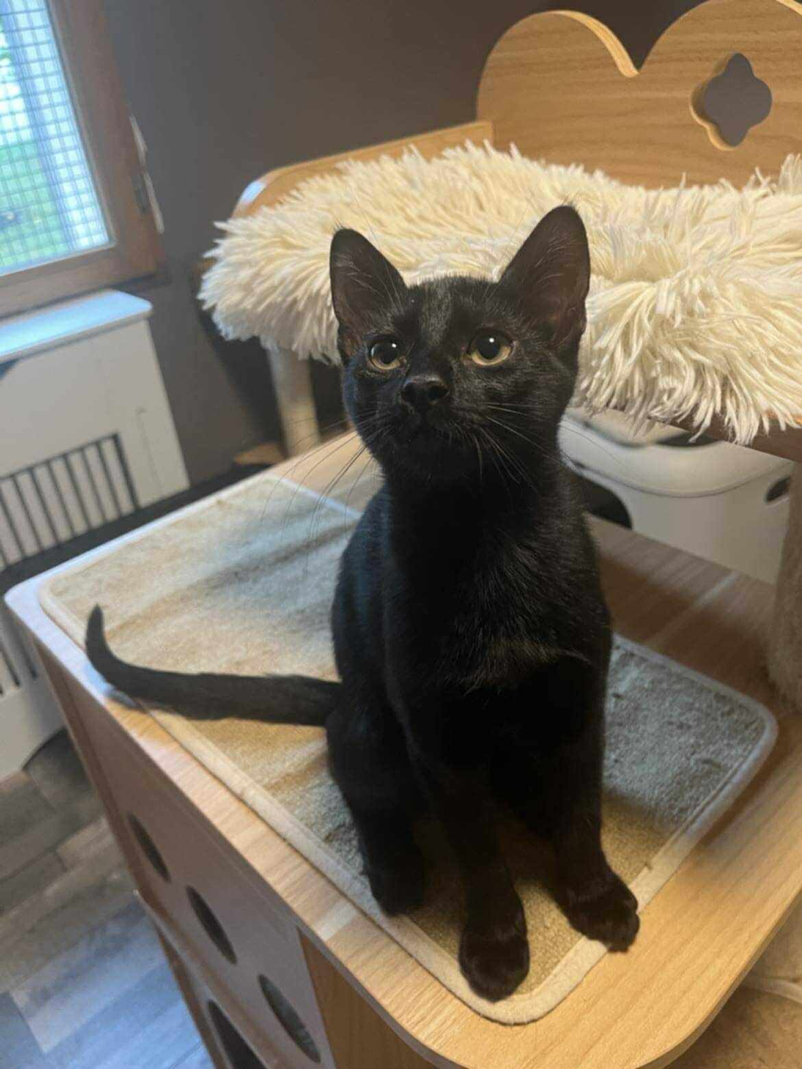 Tequila est née vers le 14 avril 2025. Elle a été trouvée avec sa fratrie dans un jardin à côté de leur maman décédée. Elle est joueuse gourmande et calinous comme tous les chatons. Tequila est tres caline voire pot de colle et cherche le contact. Tequila est un petit gabarit.
