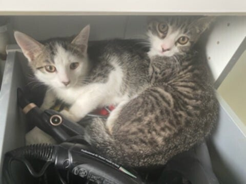 3 petits mecs nés le 15 avril 2025 et trouvés dans à la campagne où ils ont grandi avec maman tres sauvage qui a été stérilisée et relâchée. Les 3 petits se sociabilisent tranquillement, Azur est très calinou et apprécie de se lover contre vous pour dormir, Altar commence à apprécier les caresses et Ades se tient encore un peu en retrait mais pas pour bien longtemps. Ades est en famille d'accueil à Saulx les Chatreux(91). Ils sont déparasités, identifiées et primovaccinés.Ils partiront avec certificat vétérinaire et certificat d'engagement.