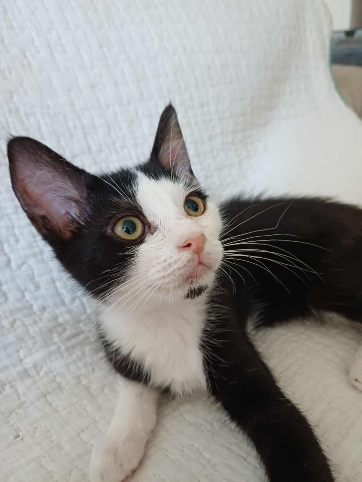 Arya est une chatonne très douce au moment des calins mais qui se donne à fond quand il s'agit de jouer.