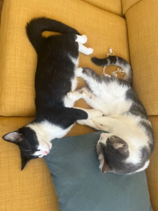 Fleckchen est OK chats voire il les apprécie s'ils sont aussi joueurs que lui.
