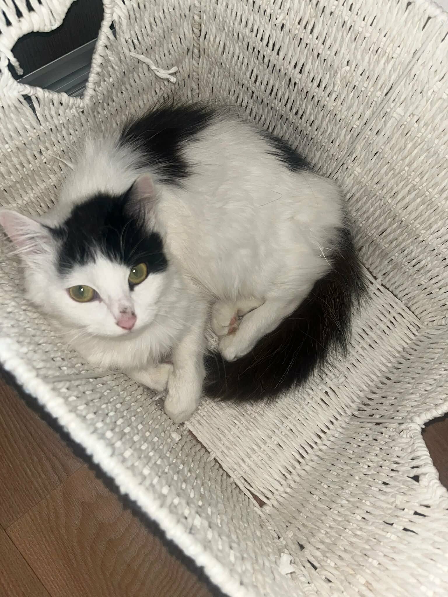 Arome est une gentille et douce minette dont sa propriétaire ne voulait plus et qu'elle chassait à coups de balai quand la minette voulait entrer. Elle est calme et câline en recherche de contacts, encore inquiète bien sur à certains bruits ou gestes. Arome est sociable congénères et joueuse avec d'autres matous comme avec les humains ou seule avec des petits objets.