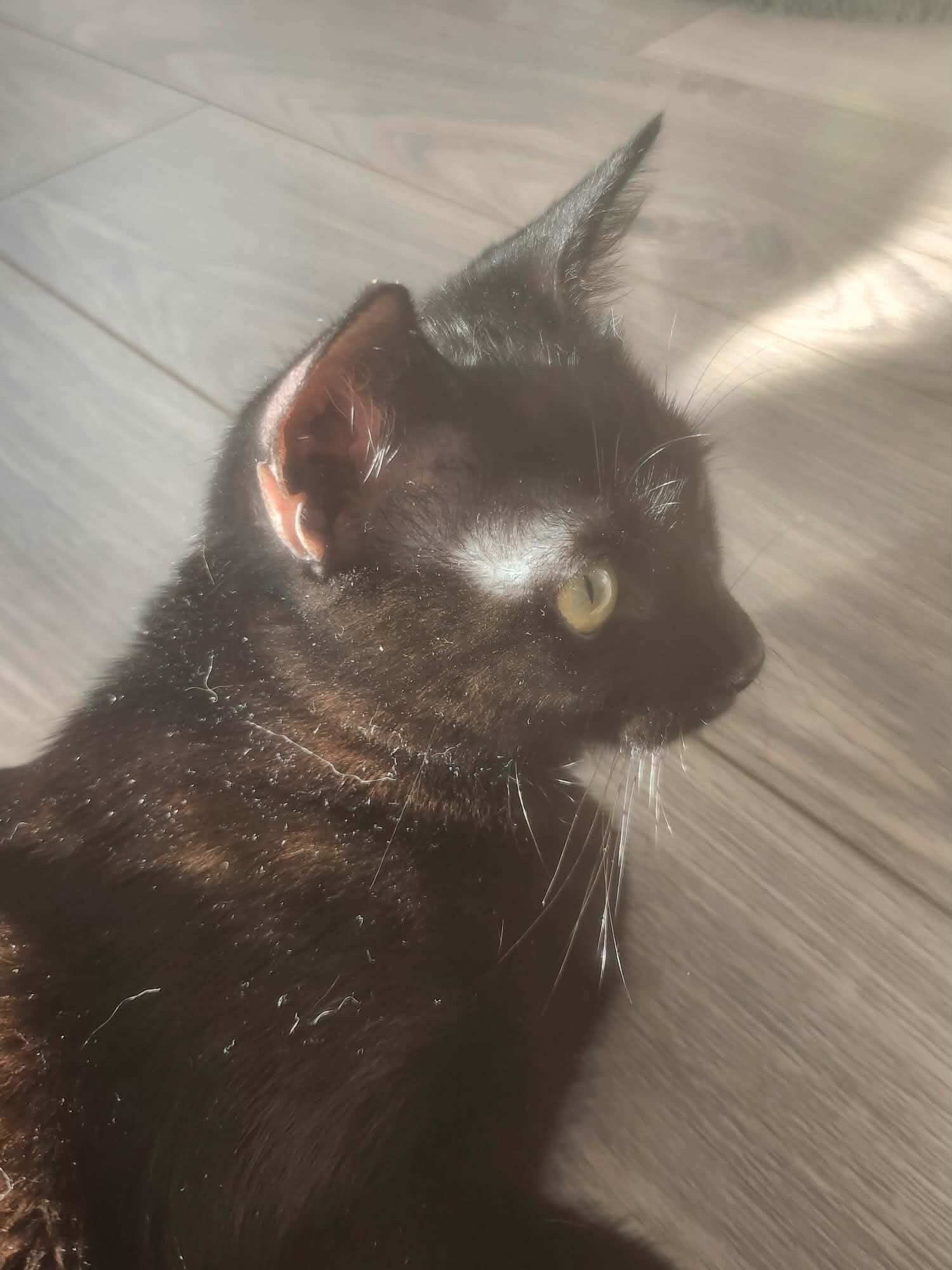 Hoshi est née vers le 15 aout 2025, c'est une minette que nous avons recueillie suite à son abandon par ses propriétaires.